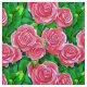 Tissu dans un motif de roses d'aquarelle, dans les tons fuchsia profond au rose pastel, contre un arrière - plan de feuilles verts