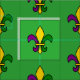 Tissu avec un motif sans soudure avec une fleur de lis; fleur de lis jaune, violet et vert aux couleurs de la célébration Mardi Gras de la Nouvelle-Orléans; sur un arrière - plan vert