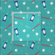 Tissu mignon comportant un motif des instruments d'art dentaire en la turquoise, le bleu, et le rouge.