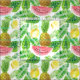Motif d'aquarelle avec feuilles tropicaux et fruits.