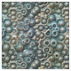 motif de sphères tridimensionnelles abstraites et chaotiques, dans les tons turquoise et or.