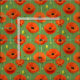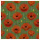 Modèle floral transparent de pavot rouge vif sur fond vert, présentant la beauté naturelle et détaillant une esthétique joyeuse et botanique. Parfait pour les projets de design, les arrière - plans ou l'utilisation artistique.