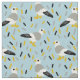 Tissu Mouettes de caricature mignonnes Bleu clair, Blanc