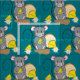 Soyez créatif tout en restant à la maison. Utilisez ce tissu amusant avec une adorable souris grise en train de manger un motif de fromage suisse sur un arrière - plan bleu turquoise foncé pour coussin , poche de crayon , sac , ou même pour un masque do-it-yourself.