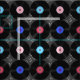 disques vinyles de musique rétro des années 80 avec notes de musique.