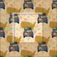 Un tissu beige présente une scène aquarelle de la vue arrière d'une voiture, empilée de haut avec des valises et des boîtes colorées, évoquant le charme d'un voyage à l'université.