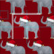 Beau tissu rouge Elephant pour Noël avec d'adorables éléphants dans un casquette du Père Noël.