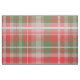 Design de tissu à thème de Noël avec un motif plaid dans les tons rouge, vert et blanc.