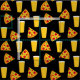 Tissu noir imprimé de chopes de bière et de tranches de pizza pepperoni