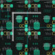 Tissu noir Abstrait atomique Turquoise