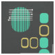 Un design d'art abstrait moderne du milieu du siècle qui aurait pu s'intégrer dans les années 1950. Diverses formes de cercles ovales et de lignes en turquoise et or contre un arrière - plan noir.
