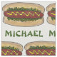 Le tissu présente une illustration originale d'un hot dog avec de la moutarde et se délecter d'un briquet. Personnalisez simplement avec votre nom !