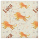 Tissu personnalisé avec impression de lion de dessin animé sur fond pointillé clair pour enfants. Créez un cadeau spécial, un vêtement ou un objet décoratif pour un enfant, garçon ou fille, qui aime les animaux sauvages, en particulier les lions. Personnalisez-le en remplaçant le nom de l'exemple par celui que vous souhaitez voir sur le tissu. Fond clair avec des tons orange, jaune et marron terreux doux.
