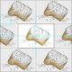 Le tissu présente une illustration originale d'une pâtisserie de style Nouvelle-Orléans, beignet, surmontée d'un sucre en poudre.