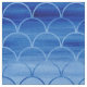 Les rangées du verrouillage mesure la forme un motif géométrique qui s'étend de foncé à bleu-clair. Leurs contours, en revanche, s'étendent de la lumière à bleu-foncé. Les courses de peinture d'aquarelle de bleu prussien évidentes dans les formes de fan montrent des variations dans la couleur.