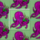 Une pieuvre violette ludique soufflant sur un ensemble de cornemuses vertes. Une image amusante pour les amateurs de poulpe et de cornemuses (à peu près tout le monde).