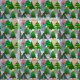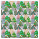 Ce tissu a un design d'arbres de Noël dans différentes nuances de vert, rose, argent et or avec différentes décorations.