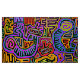 Rituel Peyote, rituel de l'oiseau, symboles chamaniques, rouge jaune bleu, orange marine, décoration boho, virginia vivier, art folklorique vagabond, flèches, , art indépendant, inspiré de mola, mola indienne Kuna.