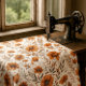 Tissu Orange botanique brûlée sur floral blanc