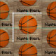 Arrière - plan graphique de plancher en bois élégant dans brun clair, avec un basket-ball texturisé orange-foncé de regard, personnalisé avec les enfants, l'équipe ou le nom et/ou le nombre d'entraîneur.