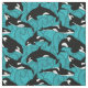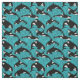 Ajoutez une touche aquatique à votre prochain projet de couture avec ce tissu illustré qui présente des illustrations d'orques ou d'épaulards en noir et blanc dressé contre un arrière - plan turquoise des vagues bleues de l'océan.