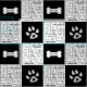 Pour vos projets d'artisanat avec votre chien en tête ou pour faire des cadeaux pour les chiens, ce mignon tissu en damier noir et blanc a un mignon chien os avec le nom de votre chien, un empreinte de patte de chien avec un monogramme et amusant chien d'art spécifique de mot. Coordonnées avec nos lits de chien, couvertures, sets de table d'animaux de compagnie, et bols d'animaux.