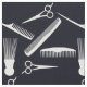 Barbier classique motif noir et blanc, salon de coiffure divers ensembles de peignes, motif ciseaux. Outils de soins pour les cheveux naturels.