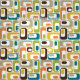 Tissu Ovales rétro moutarde blanche turquoise orange ver