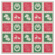 Design de Noël avec symboles de Noël en carré coloré et avec décoration de flocons de neige