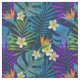 Feuilles tropicaux colorés de palmiers, monstère, fleurs de plumeria et oiseaux de paradis sur un arrière - plan bleu marine. Vous pouvez modifier la couleur de l'arrière - plan en cliquant sur le bouton "Customiser !". Veuillez noter! Vous pouvez également modifier les tailles de tuiles pour ajuster la taille de dessin dont vous avez besoin.