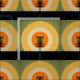 Ce design graphique présente des anneaux colorés autour d'un panier de golf à disques silhouettes et de l'herbe.