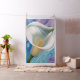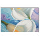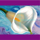 Calla Lily blanche sur un arrière - plan marbré bleu-violet dans le style de Georgia O'Keeffe. Il s'agit d'un panneau de courtepointe à illustration art numérique destiné à une tenture murale ou à une tapisserie.