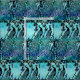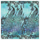 Paons vintage en xylographie folâtrent sur un fond aquarelle bleu-vert