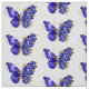 Bijoux, bleu, saphir, papillon aux fleurs pétillantes avec aile décorée de bleu, fleurs précieuses avec feuilles d'or sur arrière - plan blanc.