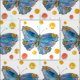 Tissu Papillons bleus Pois orange Aquarelle Art