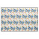 Un joli tissu décoré de stylo et d'encre de papillon bleu dans un style de vitrail accentué de points oranges peints en aquarelle.