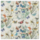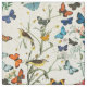 papillons botaniques vintages et oiseaux à motif floral rouge, bleu, jaune, orange et or avec un subtil arrière - plan damassé en ivoire. Superbe étoffe pour la courtepointe, la couture et l'artisanat. Conçu par © Tim Coffey.