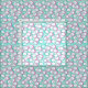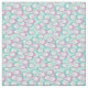 Ce tissu a un motif d'ovales dispersés en turquoise et violet avec des ovales blancs et des cercles avec des lignes à l'intérieur.