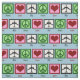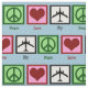 Des signes de paix, des coeurs et des avions sur un arrière - plan bleu clair pour le ciel sur le tissu. Une belle étoffe pour faire des cadeaux pour un pilote, un agent de bord ou quelqu'un qui aime juste les avions.