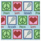 Peace Love Squash cadeau pour un joueur du sport, avec un signe de paix, coeur, et raquette.