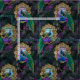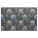 Cette belle décoration présente un paon bleu avec des plumes turquoises sur un cadre or soigné avec des fleurs violettes.