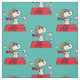 Bring your creative projects to life with this delightful Snoopy "Flying Ace" Patterned Fabric. Perfect for quilting, sewing, or crafting, this high-quality material features a repeating print of Snoopy in his beloved World War I Flying Ace persona. The design showcases Snoopy atop his iconic red doghouse, complete with aviator gear and floating clouds, set against a calming teal background.