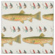 Tissu à motif truites et mouches de pêche. Créez de la décoration intérieure, cousez des objets ou fabriquez des objets artisanaux avec ce tissu personnalisé sur le thème de la pêche en eau douce. Des images colorées de truites tachetées font des "rayures" aux côtés de mouches de pêche rouges et bleues. Le fond est un blanc cassé neutre et fait partie du design, il ne peut donc pas être modifié.