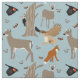 Ce tissu présente des illustrations réalistes de différents animaux sauvages avec des cerfs à queue blanche, un renard rouge, un faucon à queue rouge, un oiseau-noir à ailes rouges, un pic pilé, des papillons à queue blanche et des lanternes tachetées. Ce sont quelques-unes des créatures que j'ai le privilège de voir depuis la fenêtre de ma maison en Pennsylvanie.