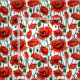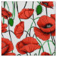 Tissu dans un motif délicat de coquelicots rouges vibrants avec des tiges vertes profondes et des feuilles, sur un certain temps arrière - plan, avec, chaque fleur de pavot unique courbé et tordu, comme si se balançant doucement dans la brise.