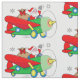 Tissu Père Noël pilotant l'avion avec des cadeaux