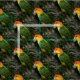 Perroquet caïque à ventre blanc sucré devant un bambou donnant une ambiance de jungle ou de forêt.