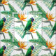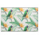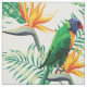 Perroquet coloré mignon et fleurs jaunes exotiques sur arrière - plan blanc. Modèle de tissu personnalisable