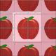 La peinture d'une pomme rouge mûre, avec une feuille verte, est carrelée comme un motif sur tissu personnalisé. La couleur arrière - plan du rose peut être customisée.