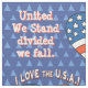 Un motif patriotique d'origine arbore un drapeau américain rempli de coeurs contre un bleu récurrent sur le design triangle bleu avec "I Love The USA" voûté au-dessus de tout autre coeur. Vous pouvez personnaliser les 2 autres légendes qui par défaut à : "United We Stand shared we fall" et "Sweet Land of Liberty" ou garder tel quel.
